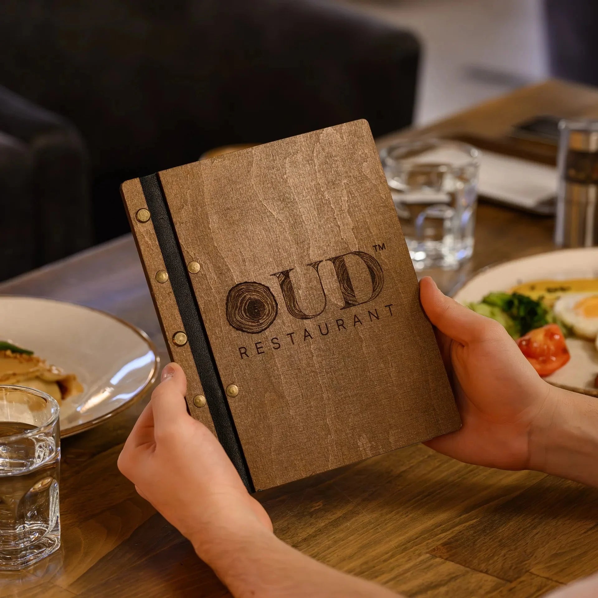 Орієнтуйтеся на концепцію закладу, інтенсивність використання та формат подачі страв — і дерев’яна обкладинка меню стане не лише практичним елементом, а й важливою частиною брендингу вашого кафе чи ресторану.