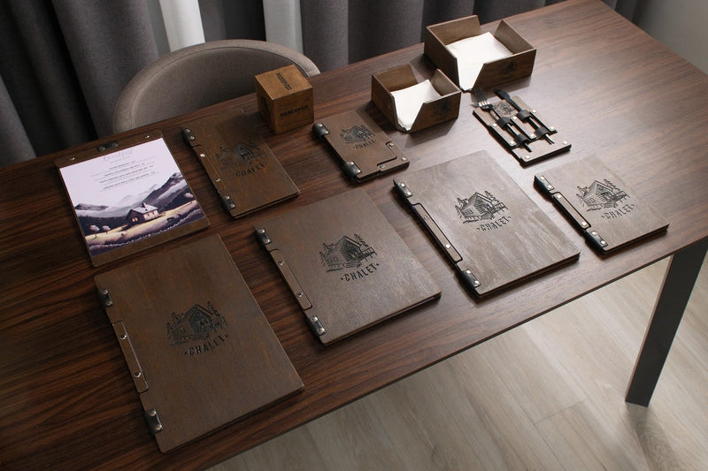 Ми спеціалізуємося на виробництві аксесуарів для закладів HoReCa: меню-холдерів, підставок, тейбл-тентів, плейсметів, барних аксесуарів, номерків столів, ключів для готелів та іншої професійної продукції.
